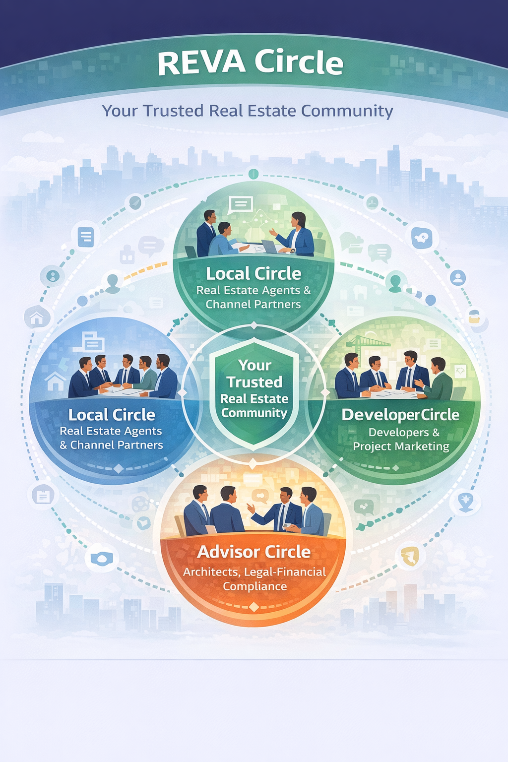 Lexora REVA Network (Real Estate Verified Alliance) is India’s first verified real estate networking ecosystem—designed to help professionals connect, collaborate, and grow with trust.